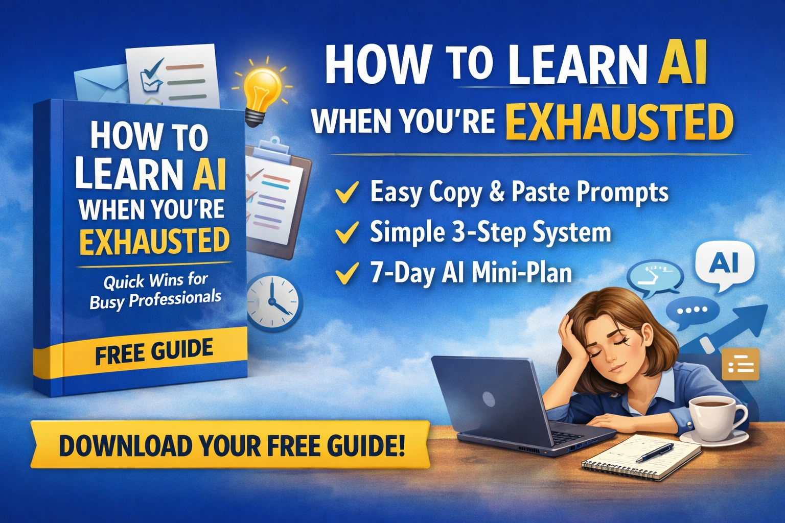 How to Learn AI When You’re Exhausted is a no-fluff, super practical guide for busy professionals who want the benefits of AI without spending hours learning it.